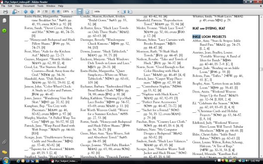 Guess what? Interweave Press, publisher of Handwoven, has indexed every issue since 1979 by subject and author!